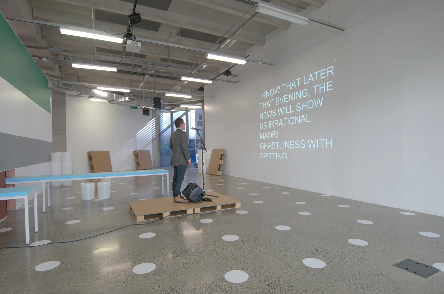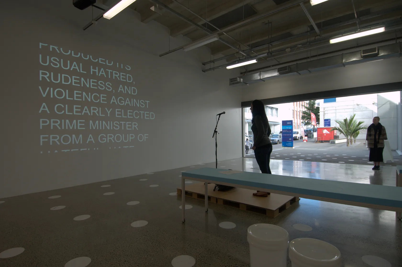 Occurring within the gallery and university, Assembly will be a conceptual proposition, expressed through architectural structure/s, intimate and public events, happenings, performances, discussions, screenings, pamphlets and the internet that are responsive to these questions of speech and the kaupapa they represent.