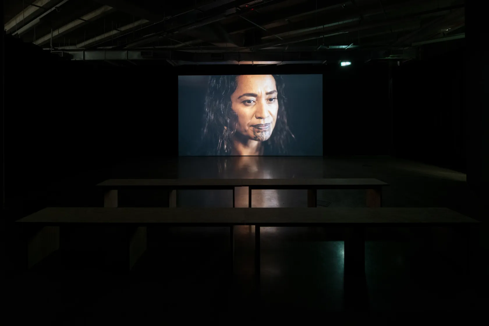 The exhibition includes the first Aotearoa presentation of Whakamoemoeā (2024), first exhibited at Sharjah Biennial 16. Whakamoemoeā figures recognised broadcaster, journalist, and politician, Oriini Kaipara, who delivers a powerful address in te reo Māori on the Waitangi grounds. Set in 2040, Whakamoemoeā imagines a constitutional transformation of Aotearoa, which transitions from a colonial Westminster-style governance to an Indigenous plurinational state, fulfilling the visionary aspirations of the 2016 report Matike Mai Aotearoa, originally championed by the late lawyer and intellectual Moana Jackson.